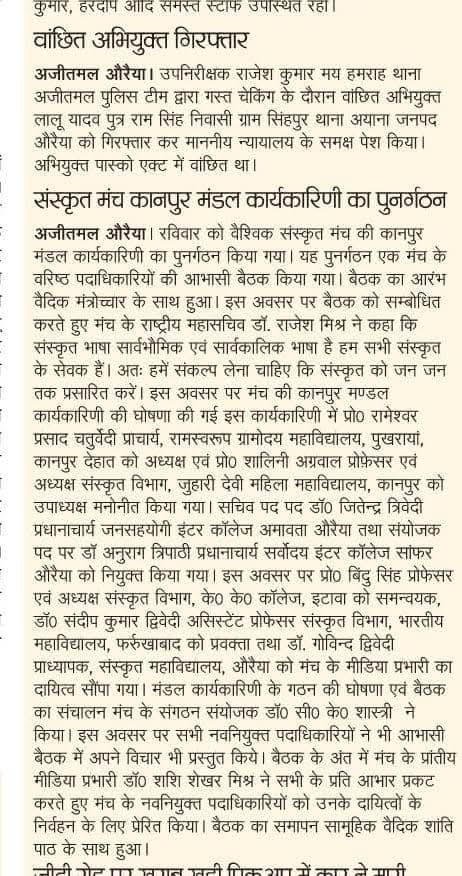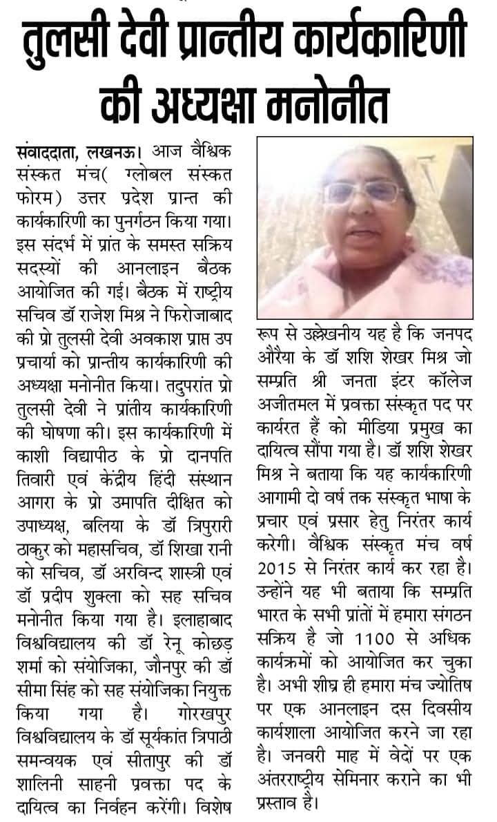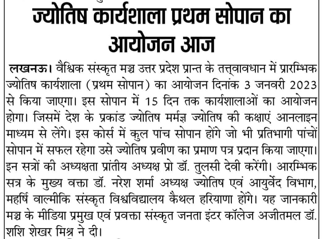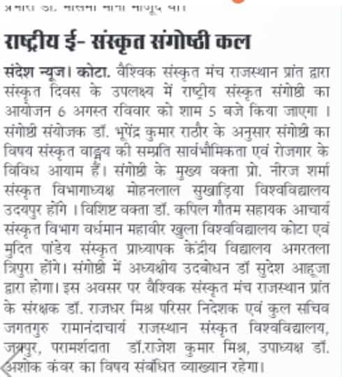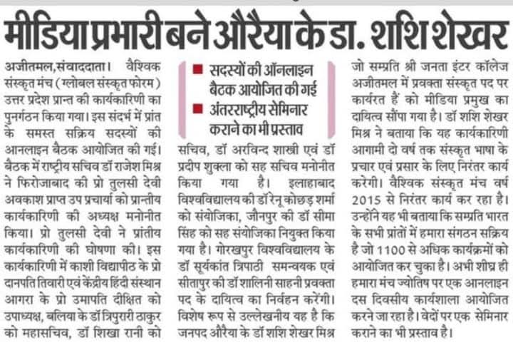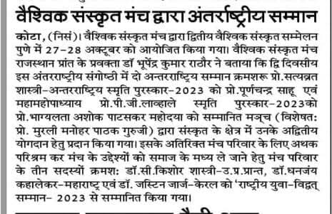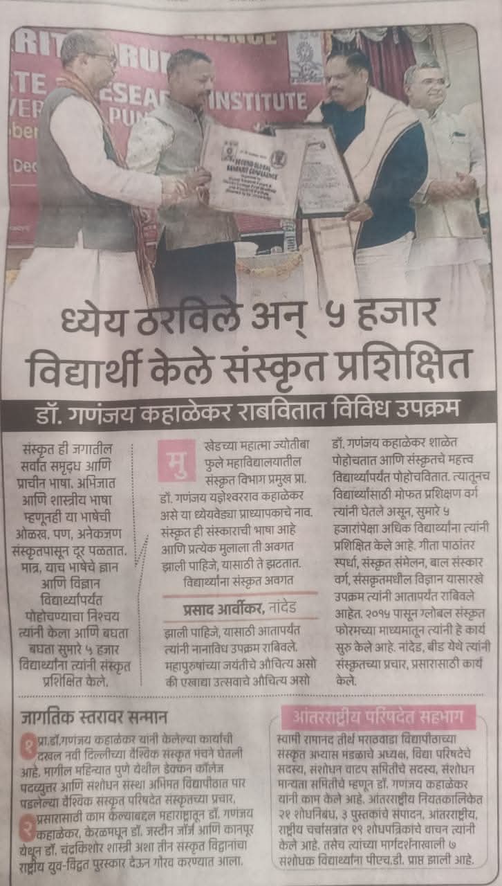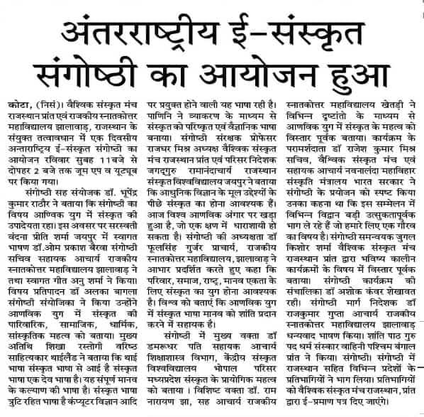 Excerpts from Newspaper Published for Global Sanskrit Forum