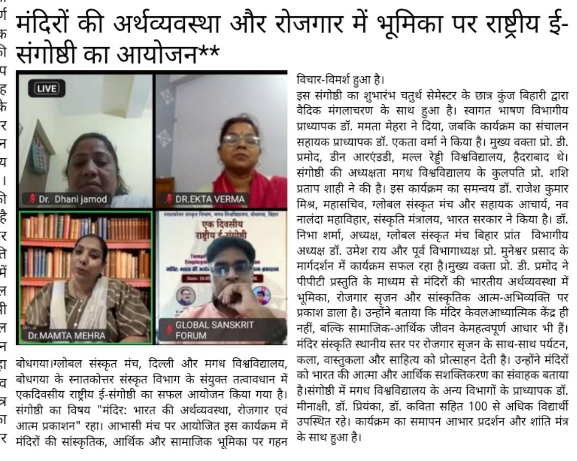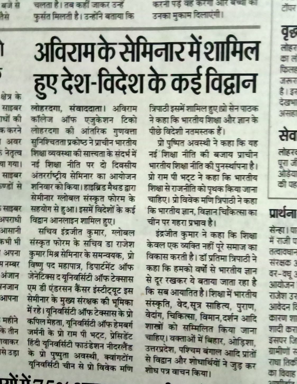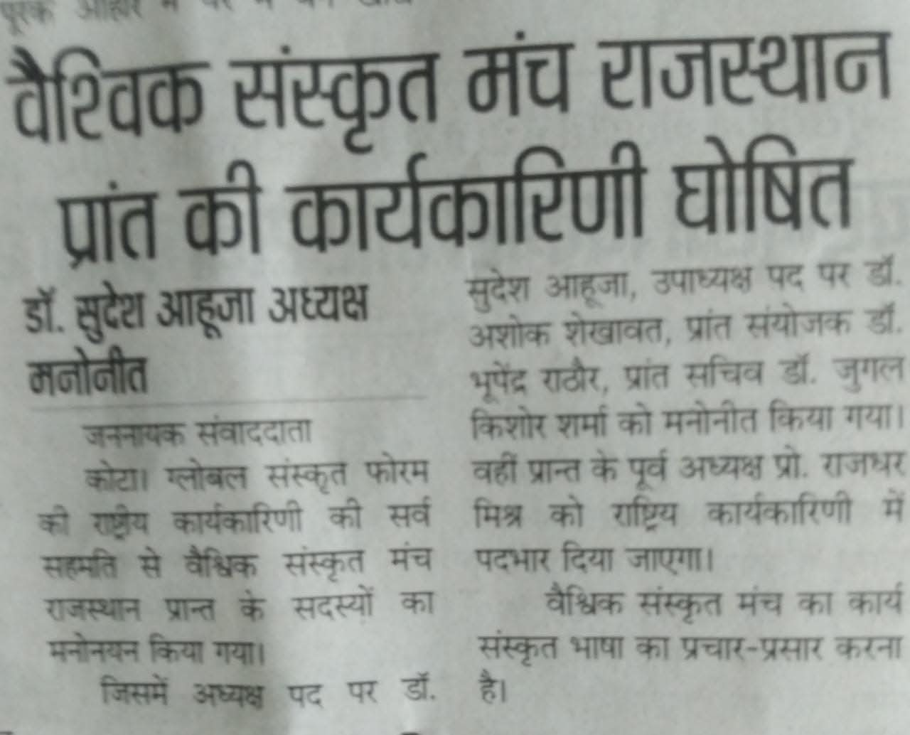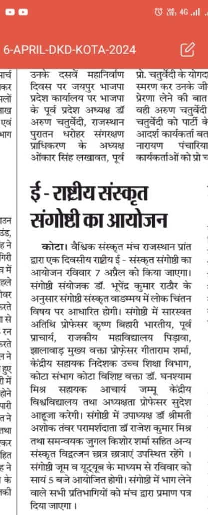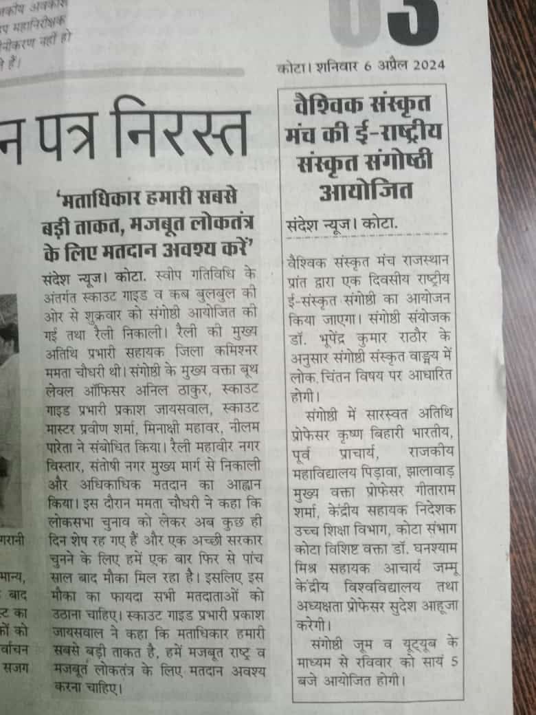 Excerpts from Newspaper Published for Global Sanskrit Forum