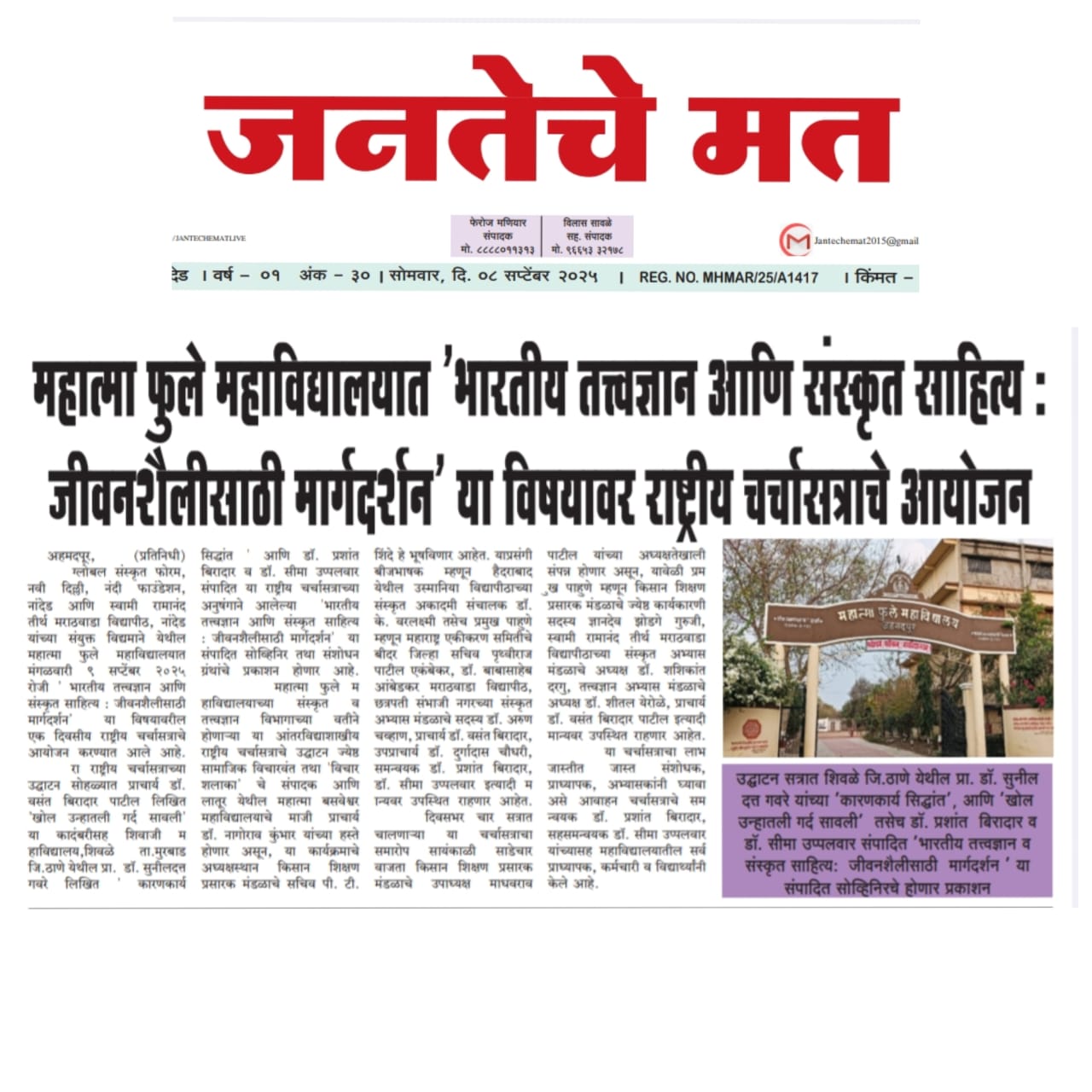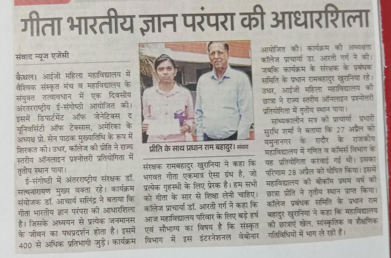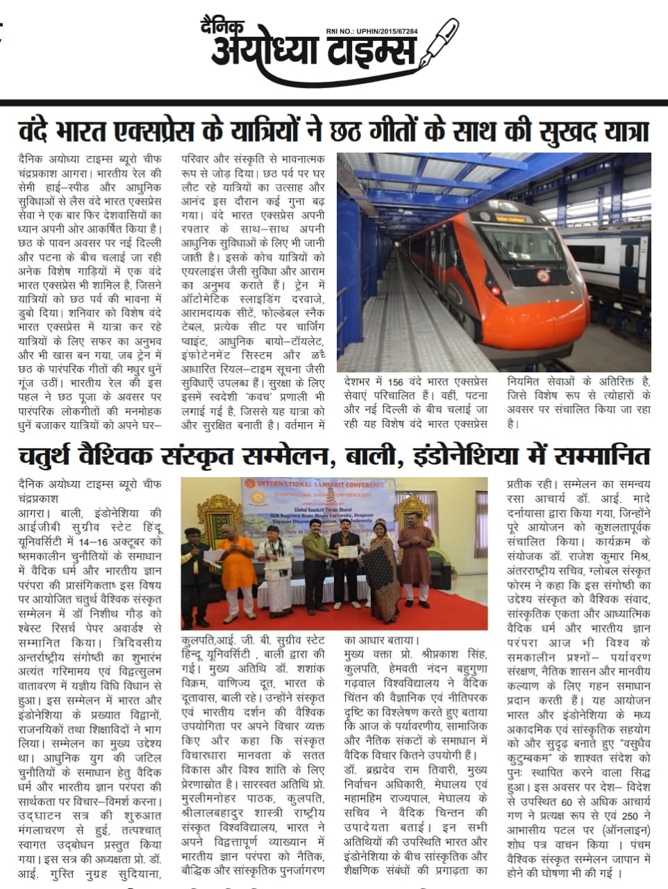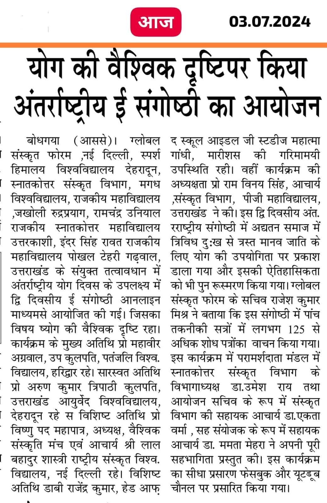 Excerpts from Newspaper Published for Global Sanskrit Forum